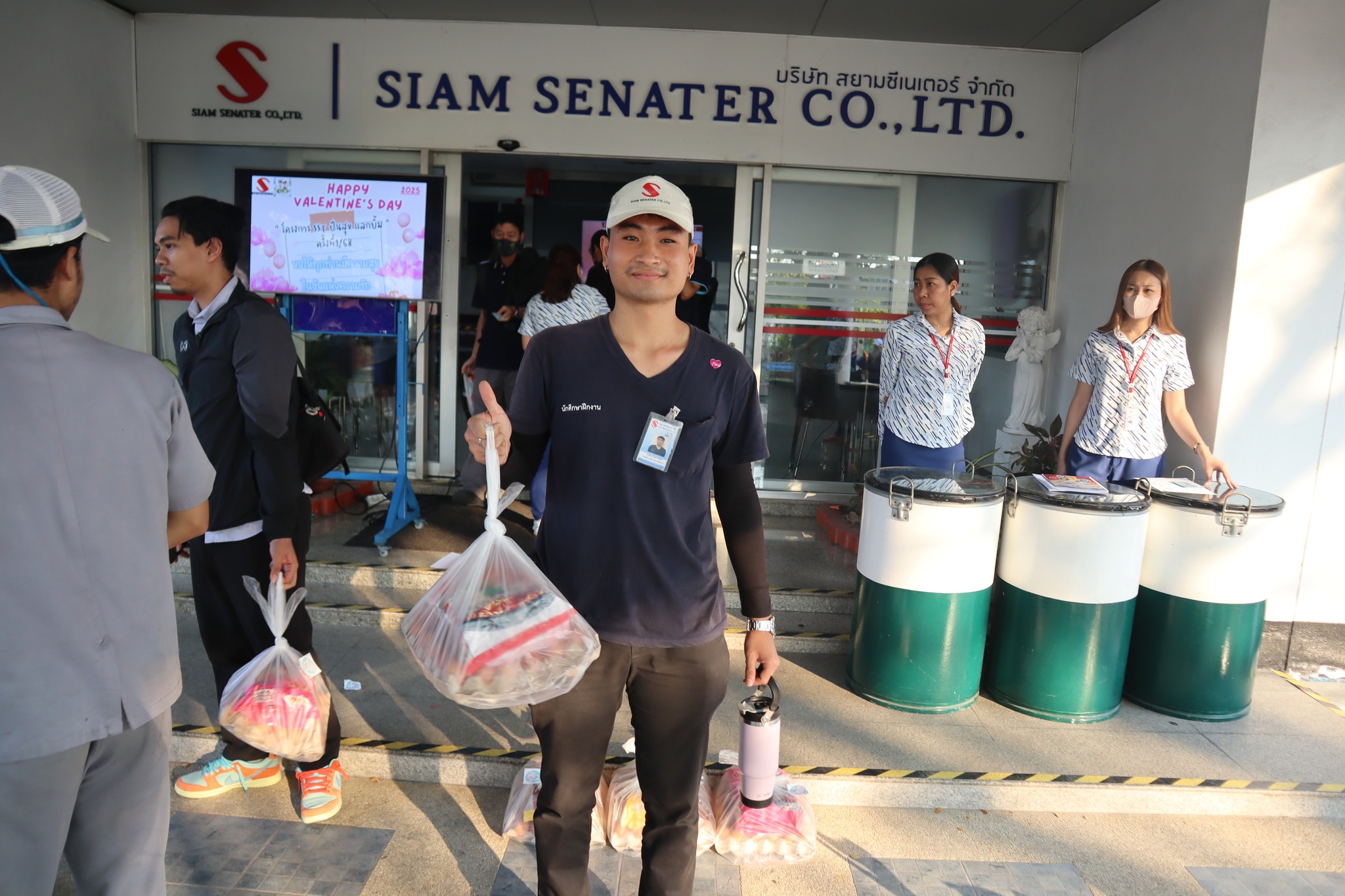 เมื่อวันที่ 14 กุมภาพันธ์ 2568 ที่ผ่านมา ทางบริษัทสยามซีเนเตอร์ จำกัด ได้มีโครงการปันสุข แลกยิ้ม โดยแจกไข่ไก่ 1 แผงและบะหมี่กึ่งสำเร็จรูป 1 แพค ให้กับพนักงานบริษัททุกคน เพื่อเป็นการช่วยบรรเทาลดค่าใช้จ่ายภายในครอบครัวของพนักงาน ซึ่งเป็นโครงการที่สุขใจทั้งผู้รับและผู้ให้